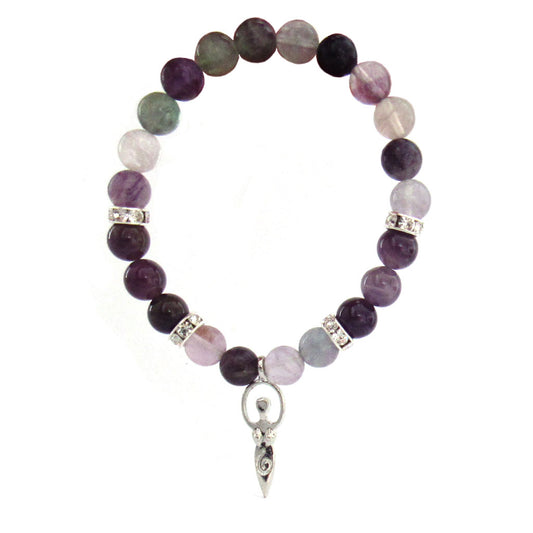 Fluorite and Amethyst Beaded Bracelet with Goddess Charm