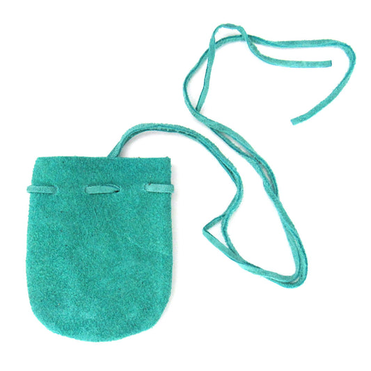Suede Leather Pouch with Flower of Life Charm (Teal)
