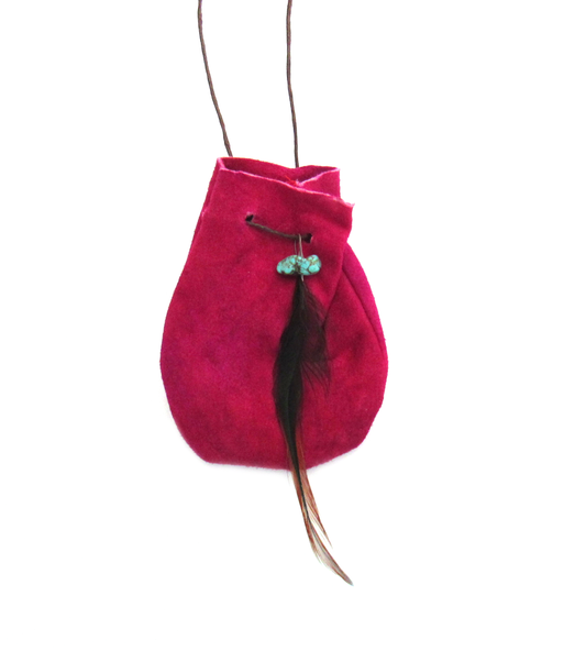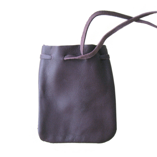 Dark Pink Leather Pouch with Cord