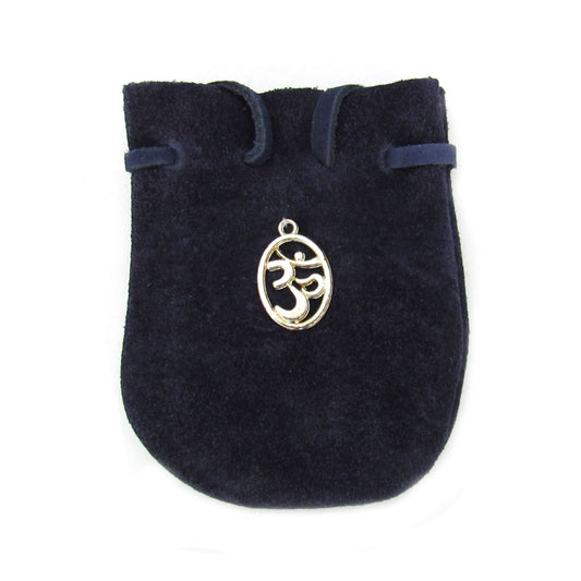 Suede Leather Pouch with OM Charm (Black)