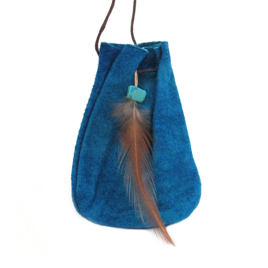 Blue Leather Pouch with Cord