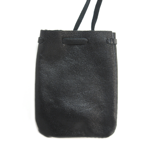 Suede Leather Pouch with Goddess Charm (Black)