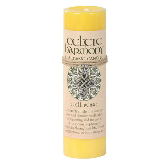 Celtic Harmony Pillar Candle with Pewter Pendant (Well Being)