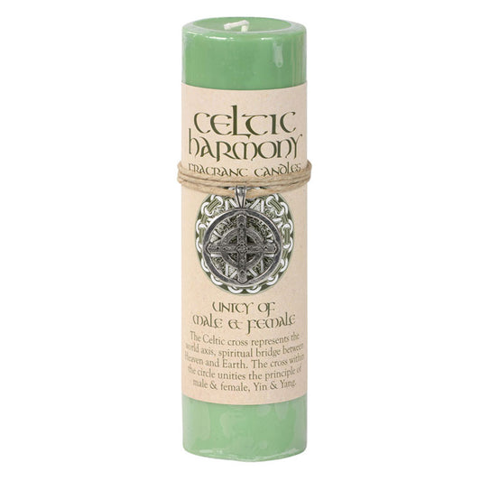 Celtic Harmony Pillar Candle with Pewter Pendant (Unity of Male and Female)
