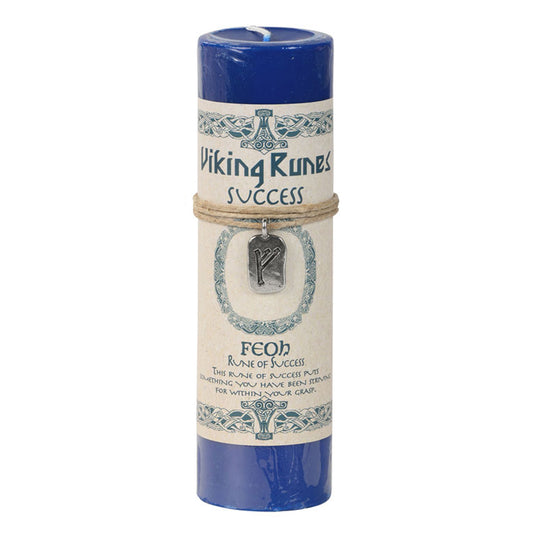 Viking Rune Pillar Candle with Feoh (Success) Pendant