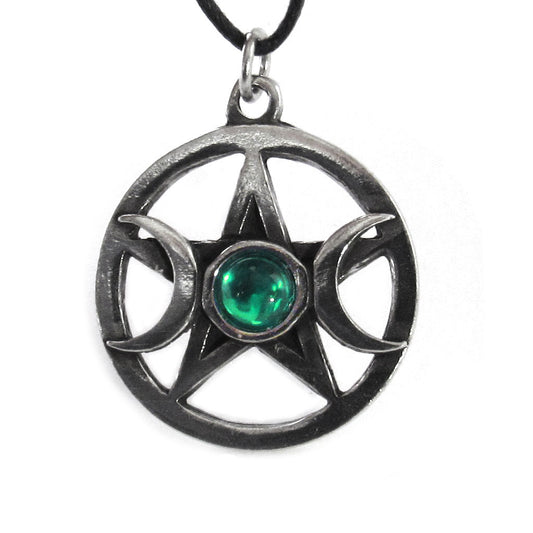Triple Moon Pentagram Pendant with Gem (Blue)
