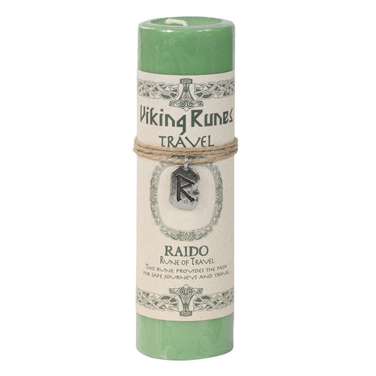 Viking Rune Pillar Candle with Raido (Travel) Pendant