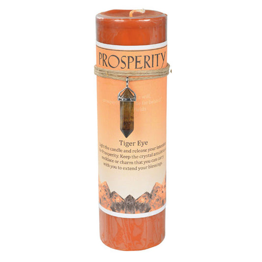 Prosperity Pillar Candle with Tiger's Eye Pendant