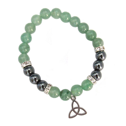 Hematite and Aventurine Beaded Bracelet with Triquetra Charm