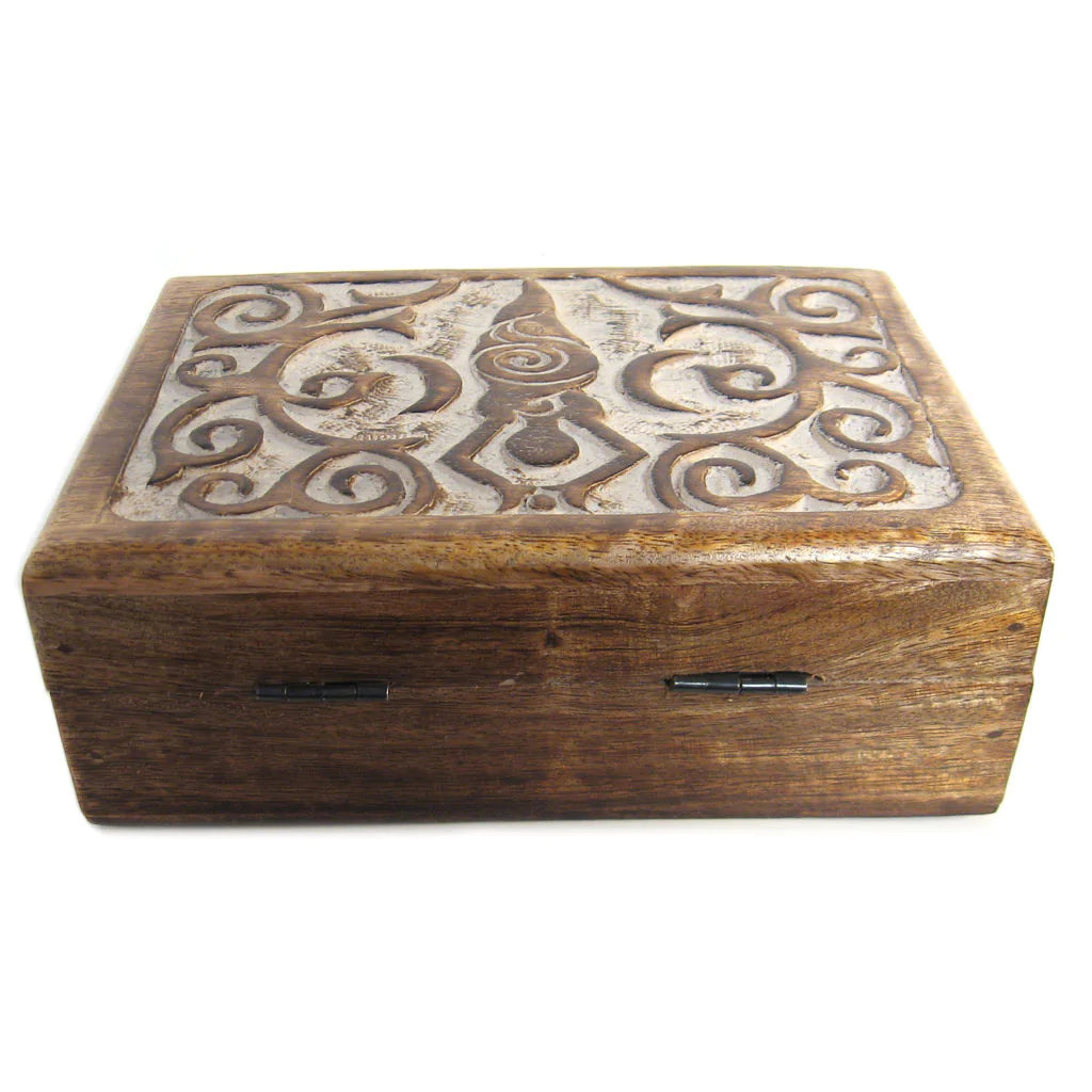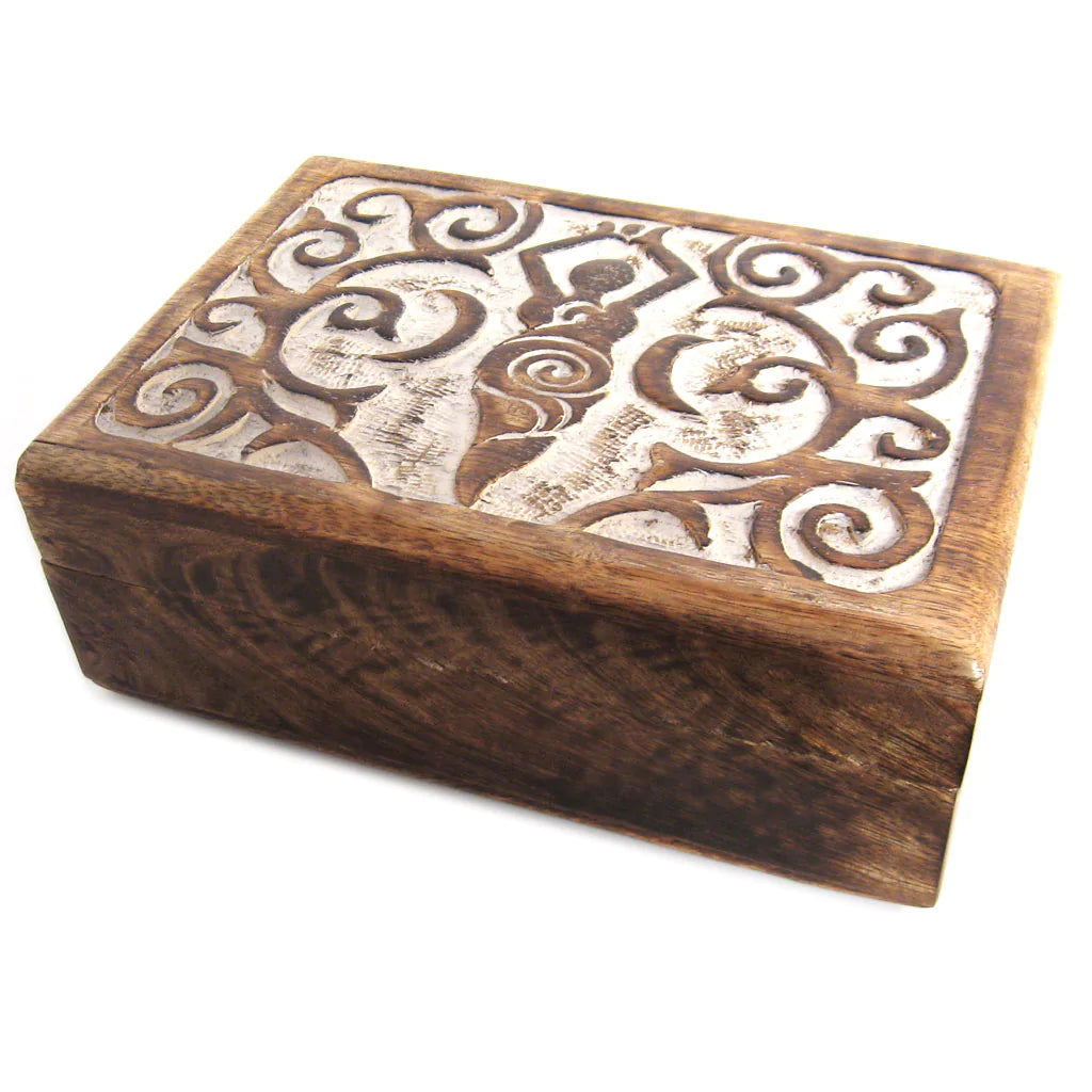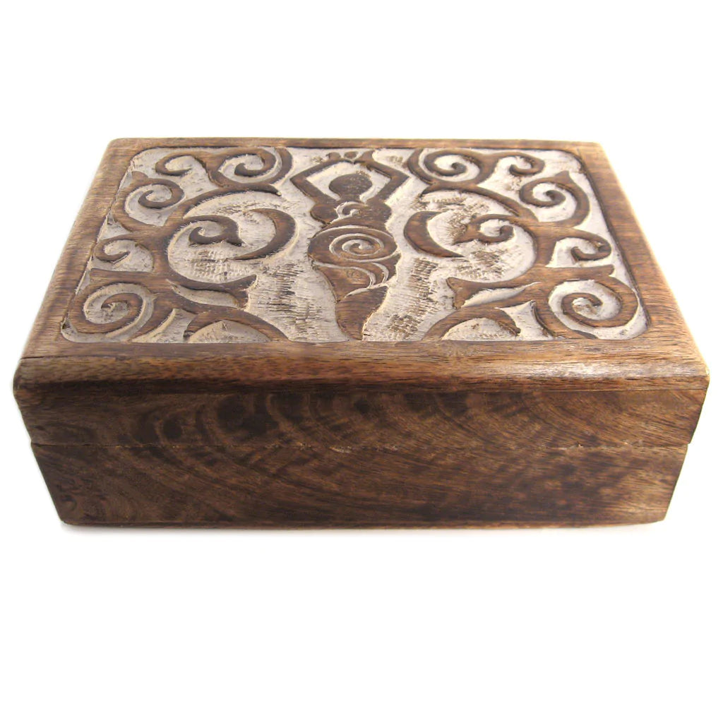 This box is handmade from natural materials. Please expect small variations in color and carving detail.