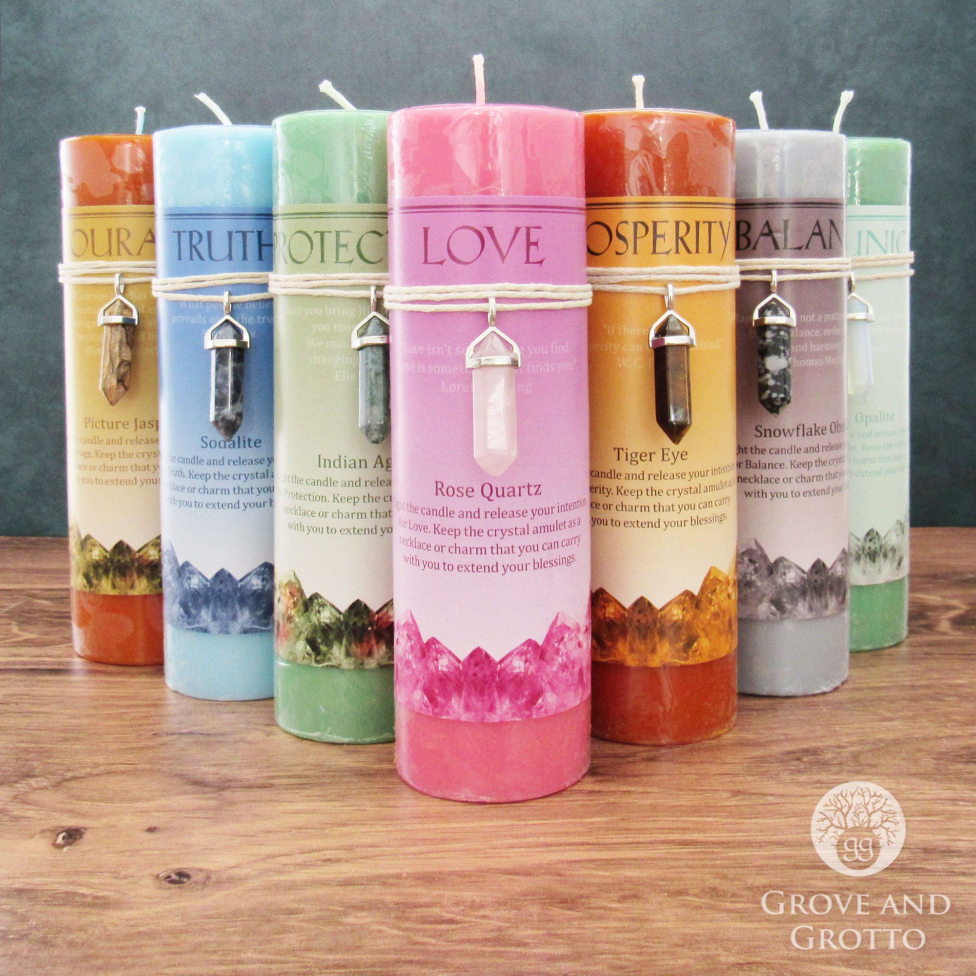 Instructions: Prepare an altar space or flat surface for your candle burning ritual. You may include herbs, art/photos, or other objects that remind you of your intention to attract good communication. Breathe in the scent of the candle and focus on the object of your desire. When you're ready, light the candle and release your will into the universe. Keep or wear the crystal amulet as a charm to extend your blessings and serve as a reminder of your work.