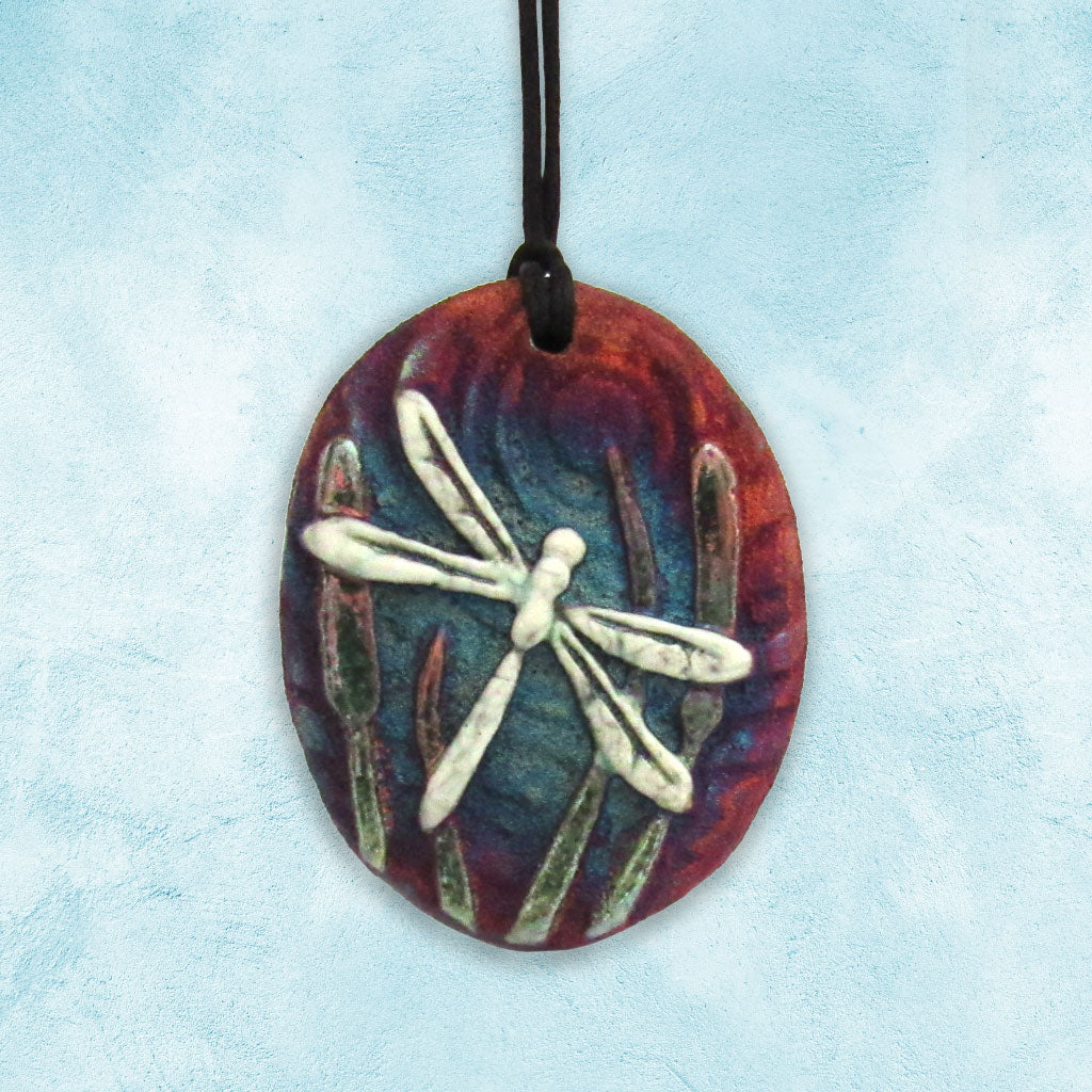 Dragonfly Raku Medallion with Cord