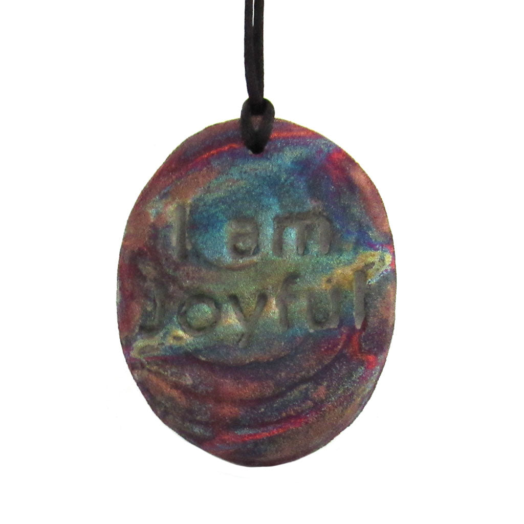 This medallion features the image of a dragonfly with marsh reeds on the front, while the back is stamped with the affirmation "I Am Joyful."