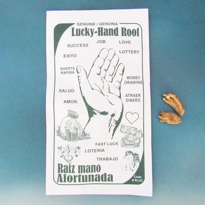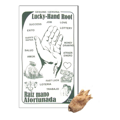 Packet contains 1-2 genuine whole Lucky Hand root pieces by Espiritu. Sold as a botanical curio only (not a substitute for medical, legal, or other professional advice).